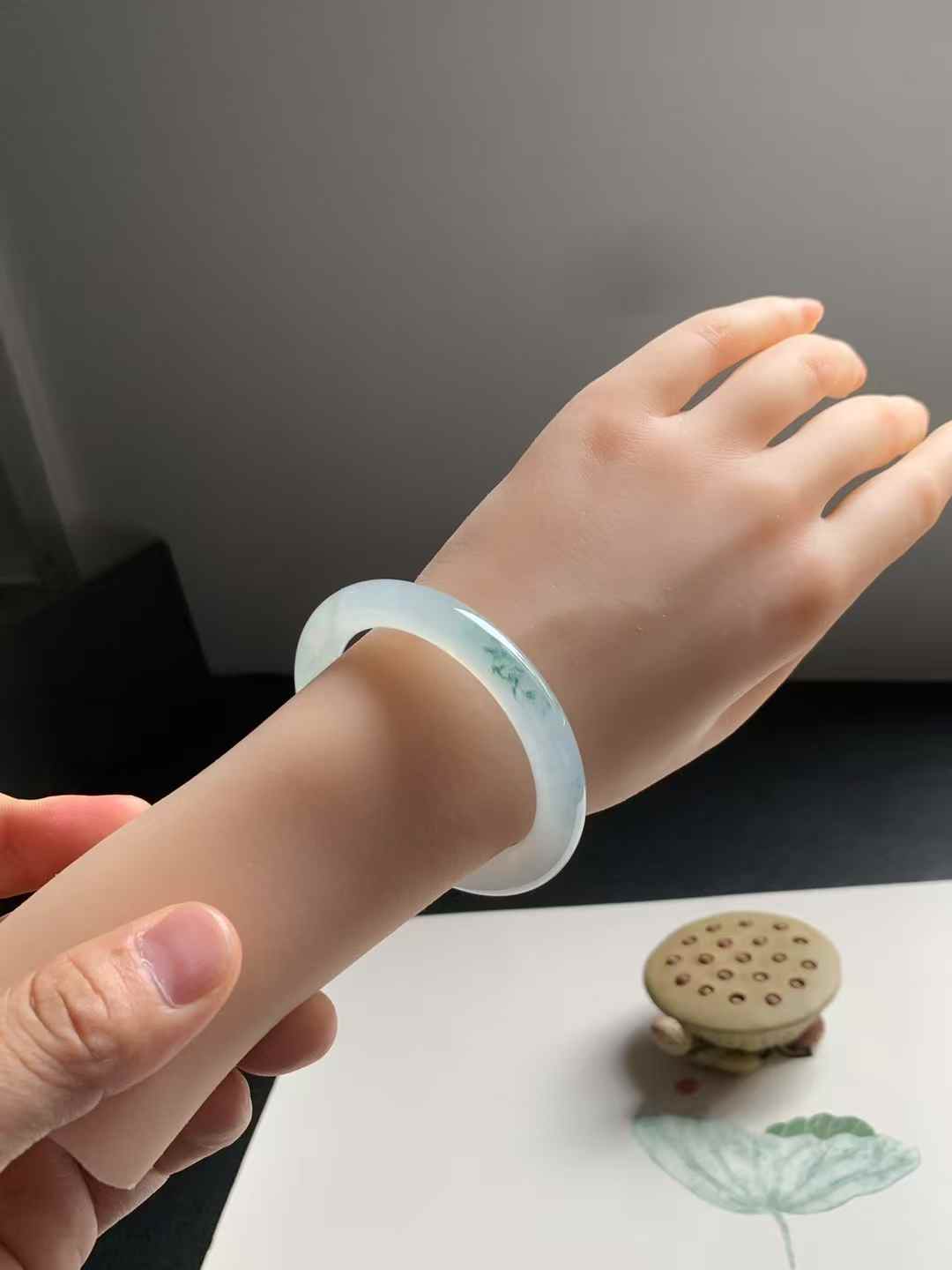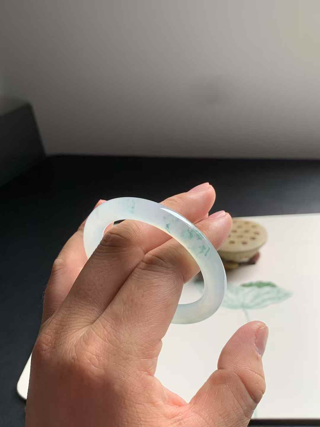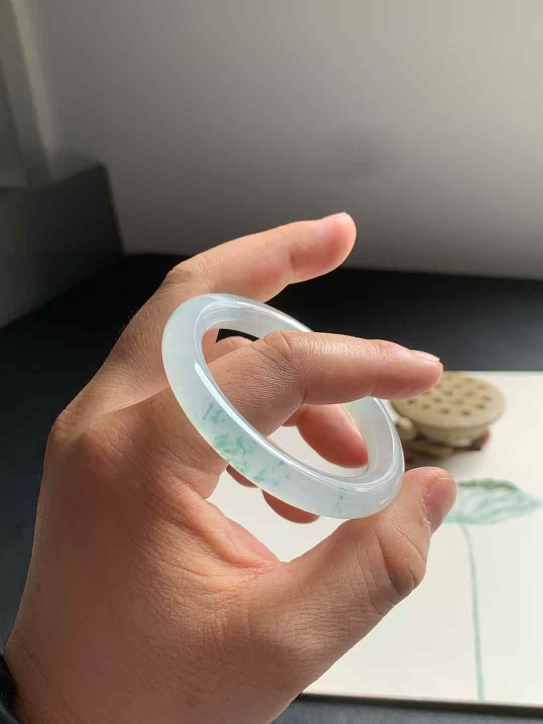 这款冰底起光飘花圆条镯,尺寸为50.5-8.7-8.7mm,晶莹透亮,质地老练,光泽自然生动。飘花纹理灵动雅致,种水俱佳,展现出秀美纯净的冰种特色。佩戴它,不仅彰显优雅品味,更带来清新灵动的气质,值得珍藏与推荐。