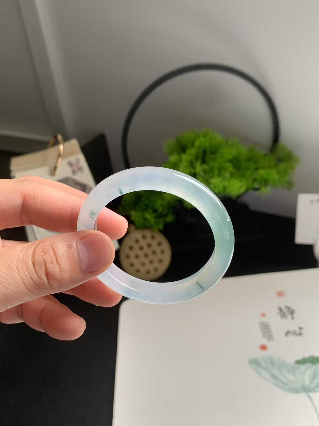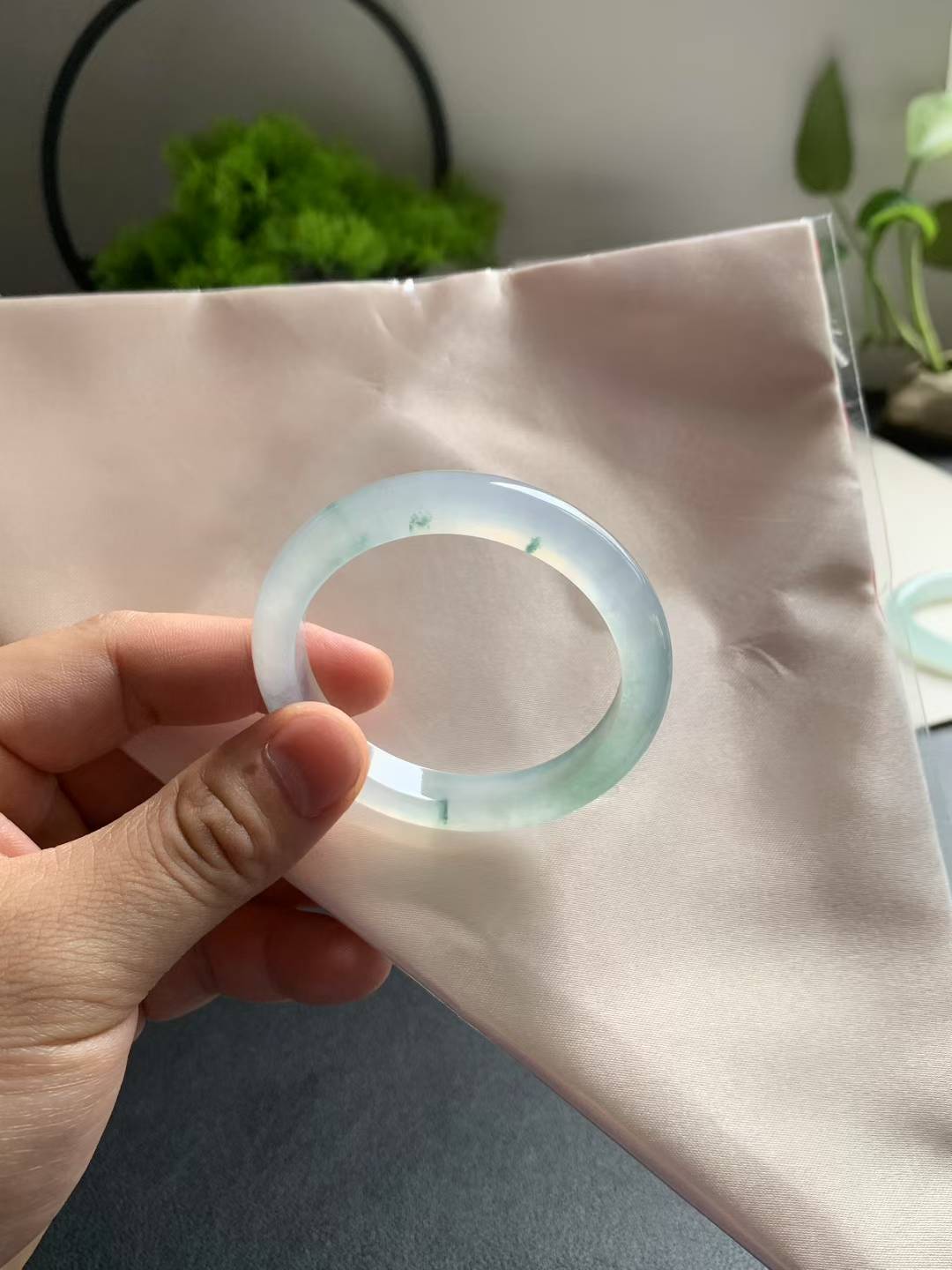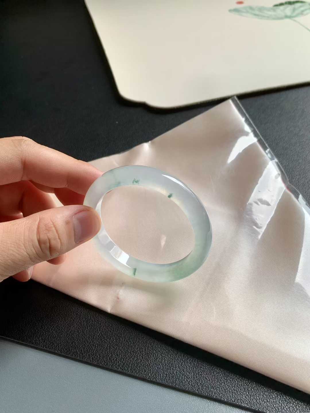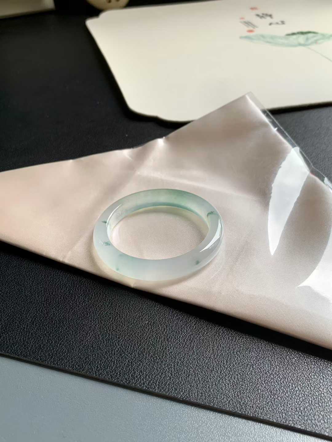 这款冰底飘花正圈翡翠手镯,尺寸为50-9.2-7.3mm,晶莹剔透,光泽自然流畅。手镯整体冰透莹润,飘花纹理灵动雅致,清澈透亮,带来明显的冰感,无任何纹裂瑕疵。无论日常佩戴还是送礼,都能展现优雅气质,是小手姐妹们的理想选择。