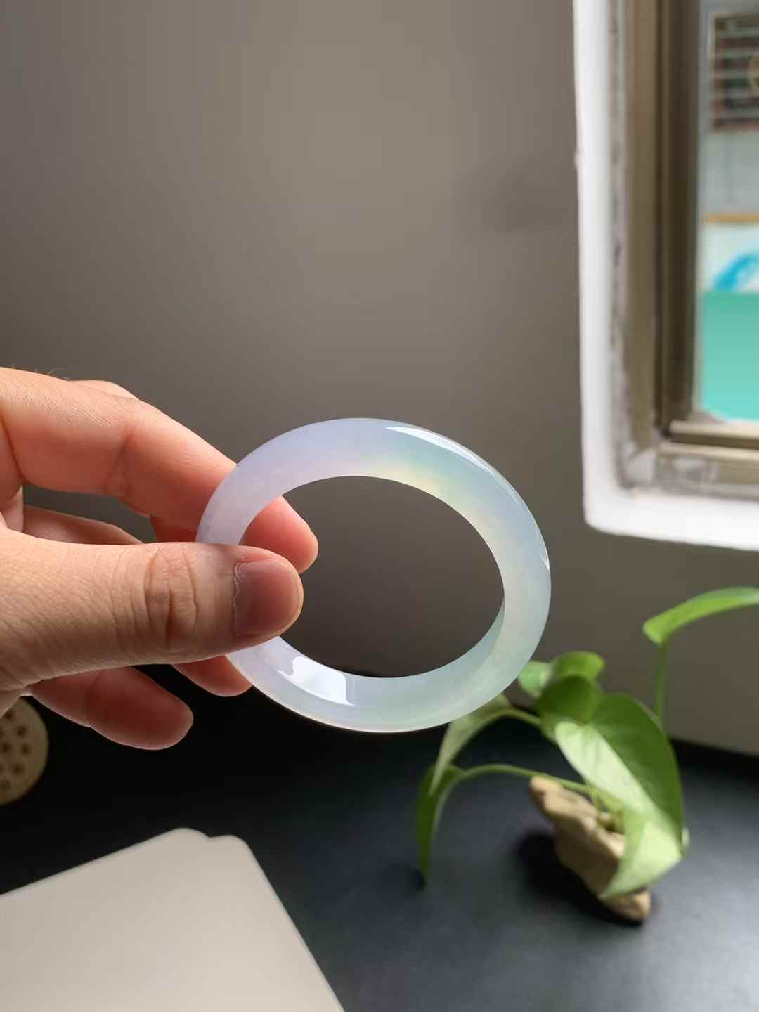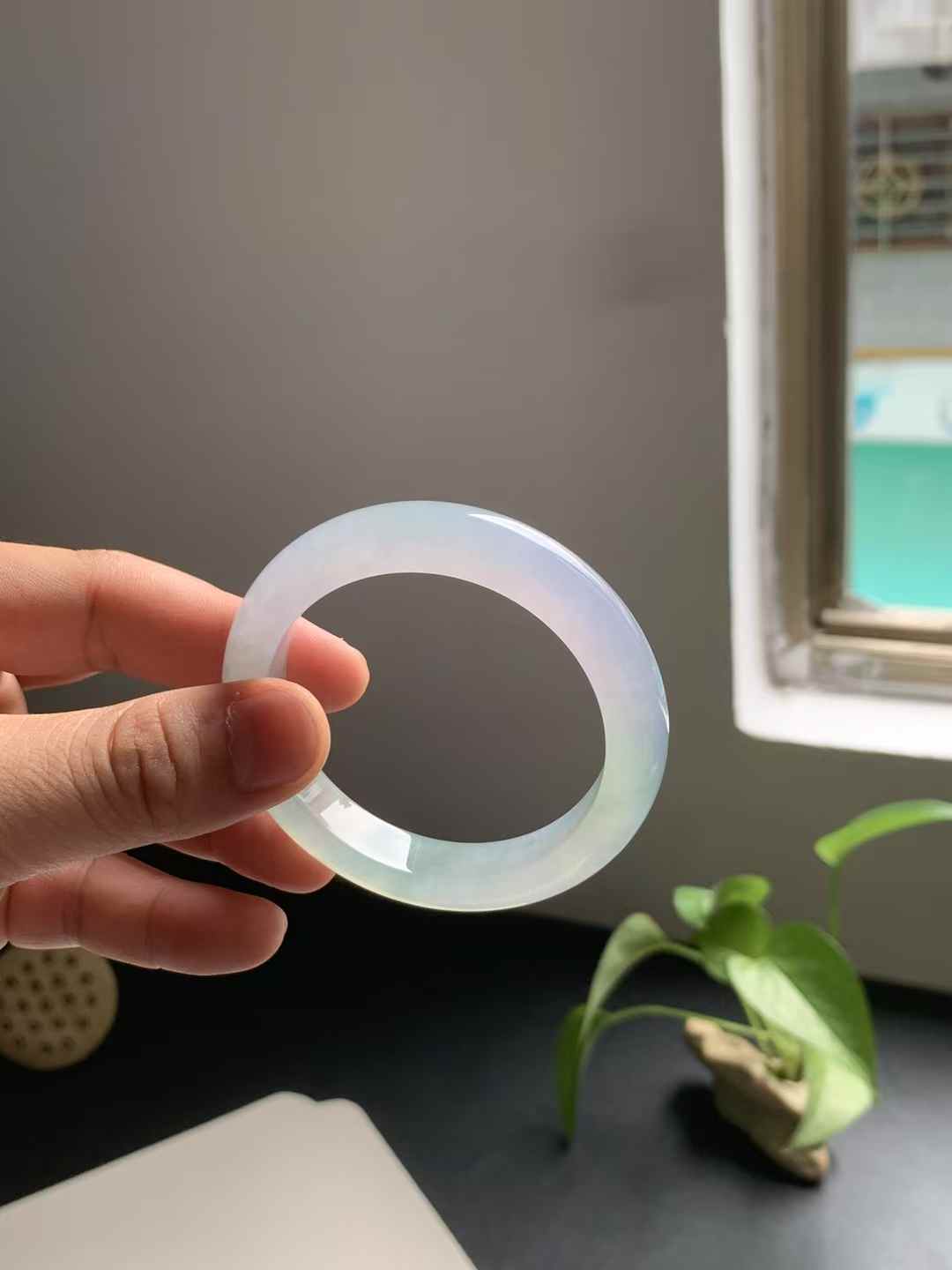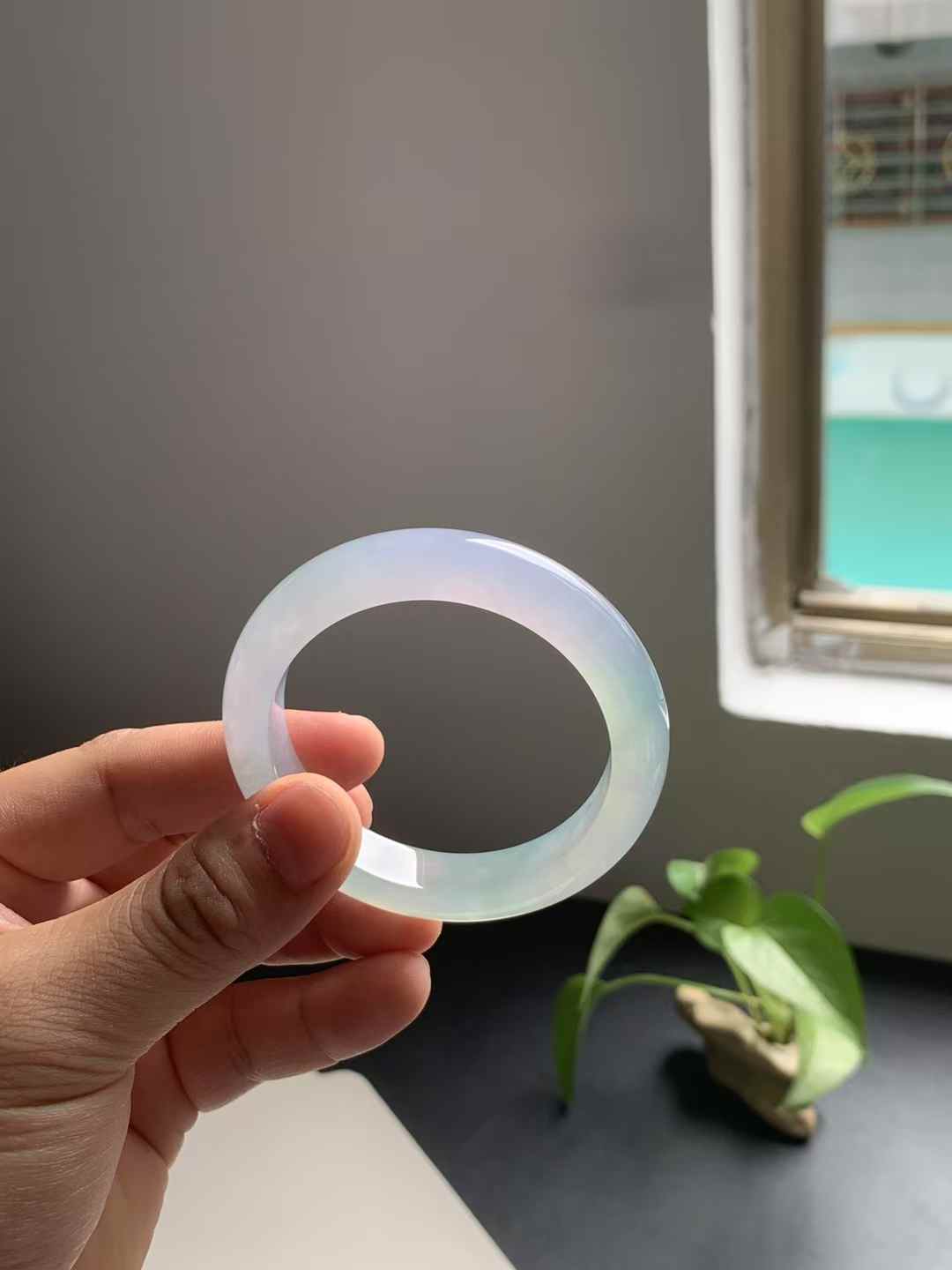 冰种春彩正圈翡翠手镯