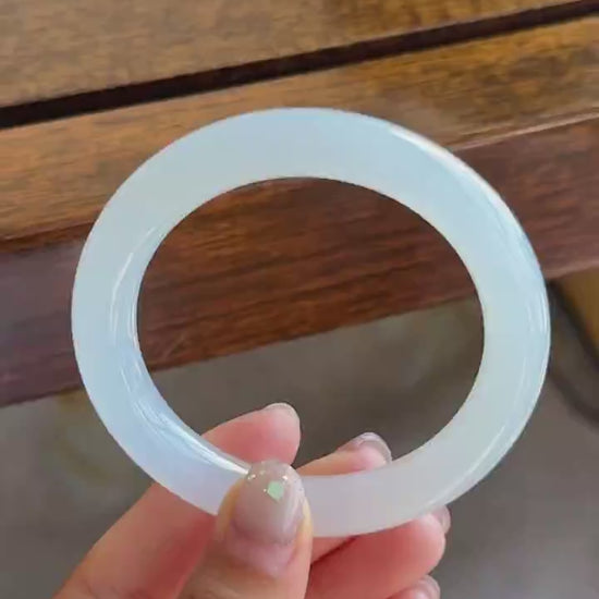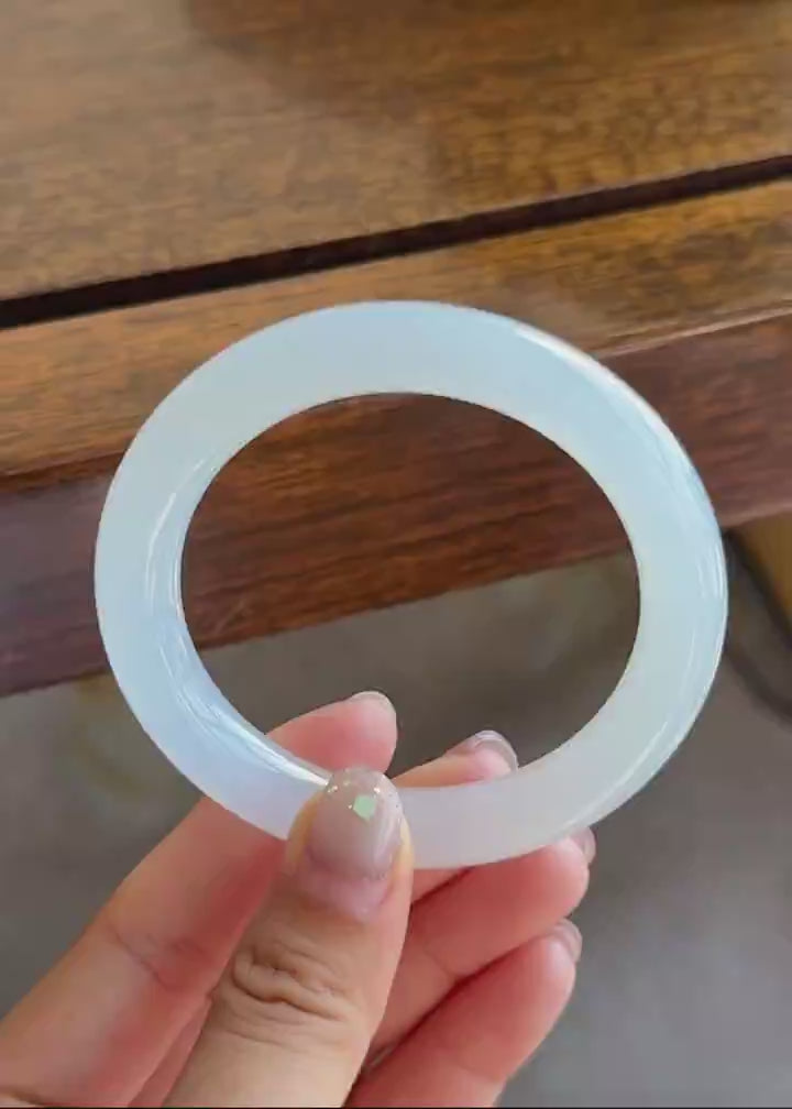 这款冰种白冰圆条手镯,圈口55-9.4-9.6,线条圆润饱满,纯净如白月光般温柔闪耀。戴上它,仿佛把一抹清凉的月光环绕在手腕,尽显优雅与灵动。完美的质感,让你不禁想轻抚这份自然的美丽,时刻散发迷人光彩。
