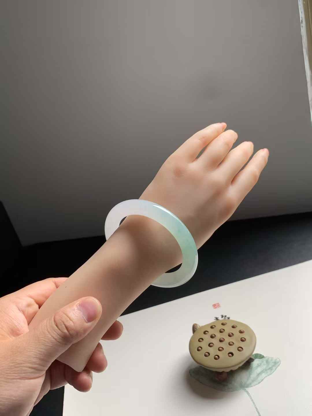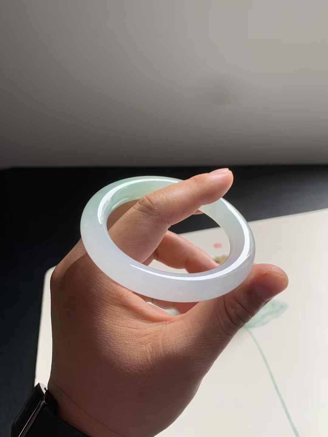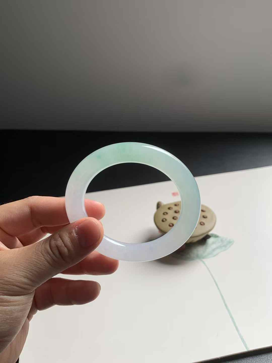 这款冰绿圆条翡翠手镯,尺寸为56.6-10.8-10.8mm,呈现圆润柔和的线条,底色冰润清爽,整体素雅怡人。手镯饱满肥美,质地细腻,完美度极高,是提升气质与品味的理想选择。佩戴它,展现自然纯净的美感,尽显优雅风范。