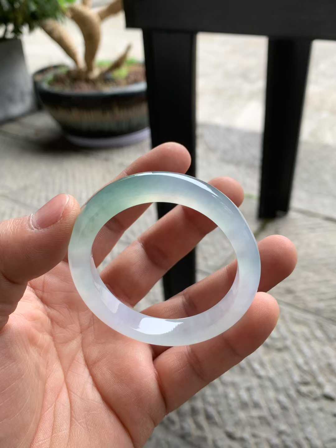 这款冰胶带色贵妃翡翠手镯,尺寸为53.5-43.6毫米,宽度9.2-7毫米,呈现冰透莹润的质感,种老且起胶,展现出细腻秀美的风采。独特的泥鳅背镯型设计,完美无纹裂,适合手腕正圈约51-51.5毫米的佩戴者,兼具典雅与收藏价值。