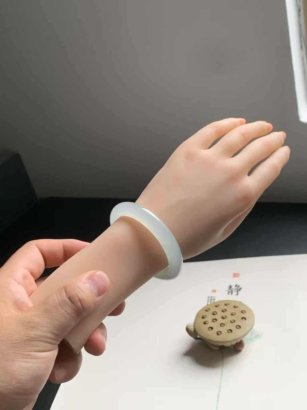 这款冰胶晴底贵妃镯,尺寸52.5-45/10.2-7.8mm,质地水润柔和,底庄胶质细腻温润,佩戴舒适迷人。整圈种水均匀,清爽素雅,点缀一抹淡淡的金丝绿,增添独特韵味。适合手围约50mm的您,展现优雅气质与自然美感。