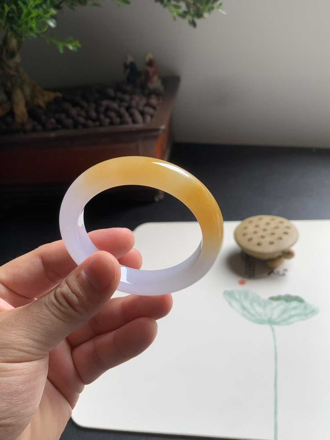 这款冰胶黄翡正圈翡翠手镯,尺寸为54.5-12.2-9mm,展现出水润柔和的质感。底庄细腻釉洁,整圈种水均匀,黄翡色泽鲜亮迷人,完美无纹裂,佩戴舒适典雅,彰显高贵品味。