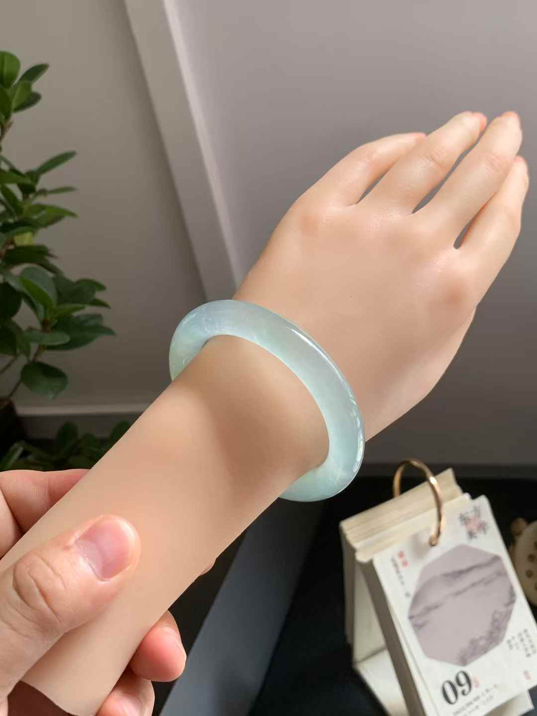 这款木那甜绿翡翠手镯,尺寸为53.5-11.1-10.5mm,展现出冰透莹润的质感和老种翡翠特有的果冻胶感。其独特的半山半水色泽,散发出自然纯净的魅力。虽有轻微瑕疵,但更显真品韵味,适合追求独特与自然美的您。完美主义者请谨慎选择,这款手镯将为您的气质增添一抹清新雅致。
