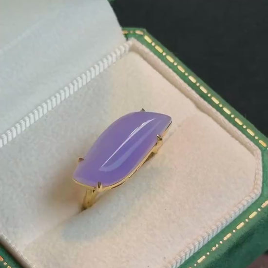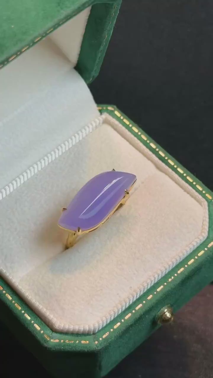 这款浓紫随形戒指以独特设计展现灵动魅力,裸石尺寸为24 x 10.3 x 6毫米,色泽浓郁,仿佛紫色云雾环绕手指。佩戴它,让你的风格随心而动,增添一抹神秘而俏皮的个性光彩。