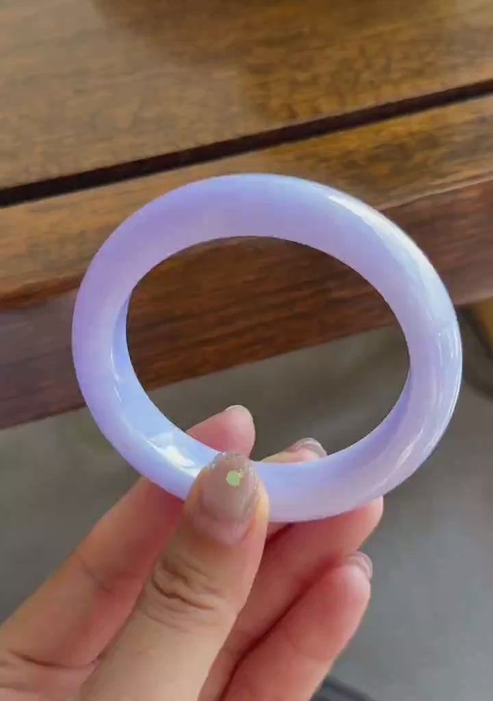 这款满紫正圈手镯,圈口尺寸为55.6-13-9,完美无瑕。无论自然光下如何变化,浓郁的熏衣草紫色都能持续散发迷人的魅力,让你无时无刻都像拥抱着春日的浪漫。戴上它,每一个手势都充满神秘又俏皮的风情。
