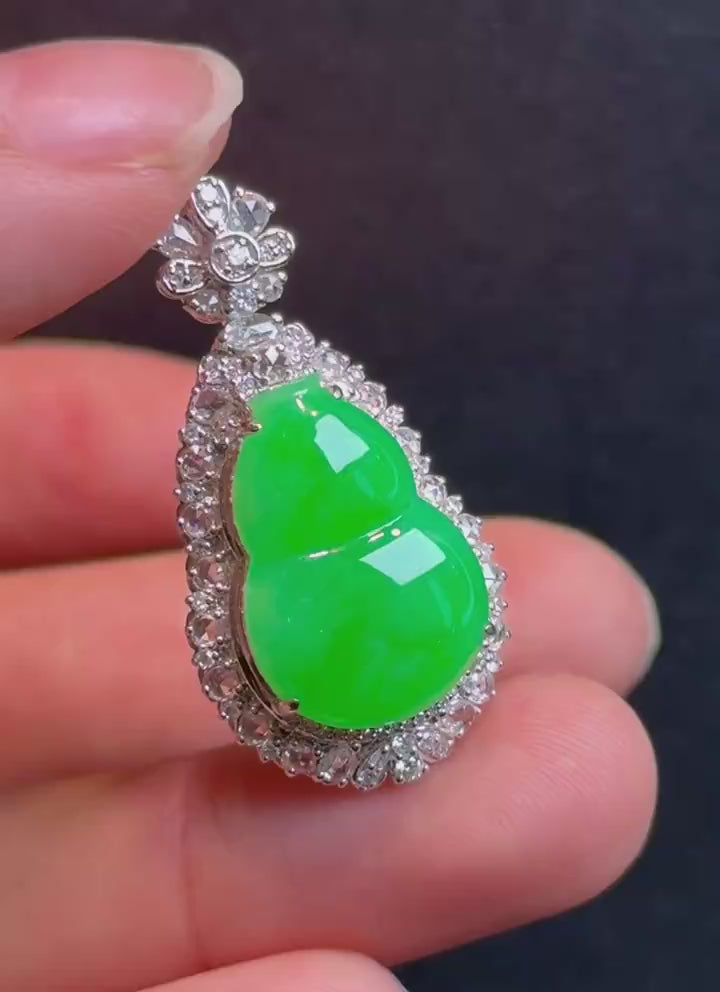 这款满绿葫芦吊坠以鲜艳的绿色裸石为核心,尺寸适中(18.5 x 13 x 4毫米),整体造型流畅(33.5 x 17.7 x 11.3毫米),宛如自然的灵动精灵。佩戴它,带来活力满满的好心情,增添俏皮与生机,让你在人群中瞬间脱颖而出!