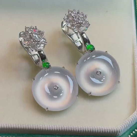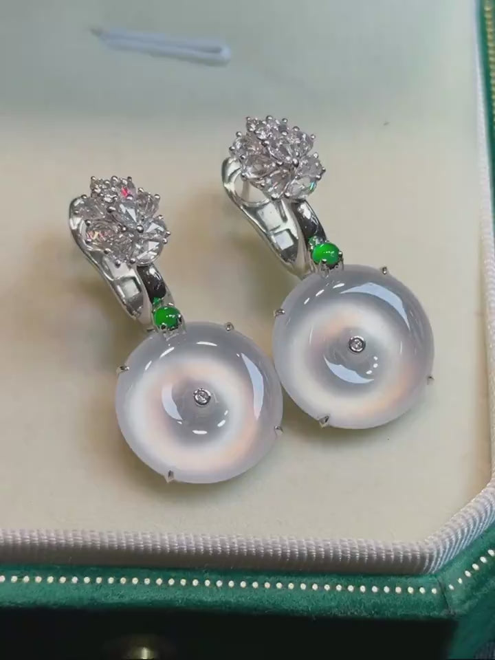 这对耳坠采用珍稀玻璃种白冰玉,净透无瑕,裸石尺寸约15x3毫米,总长30毫米。精致的平安扣设计,既时尚又寓意吉祥,佩戴起来轻盈舒适,是提升日常造型的闪亮小心机,让你随时散发独特魅力。感受玉石的清润和守护,给你的每一天增添一抹宁静与好运!