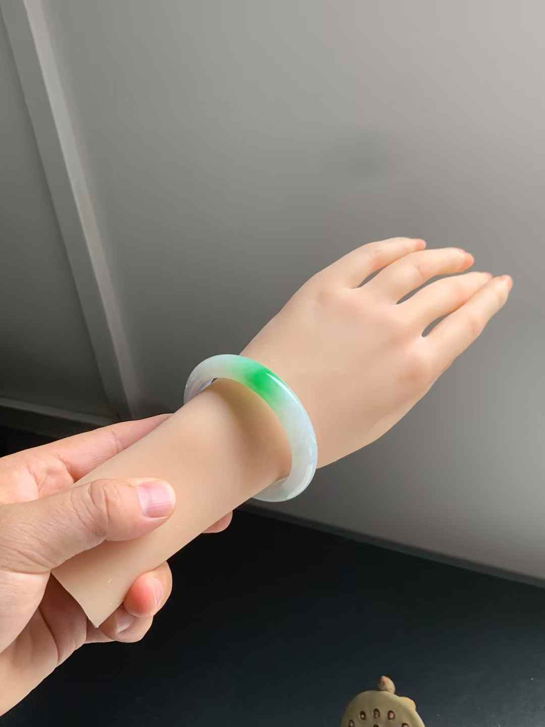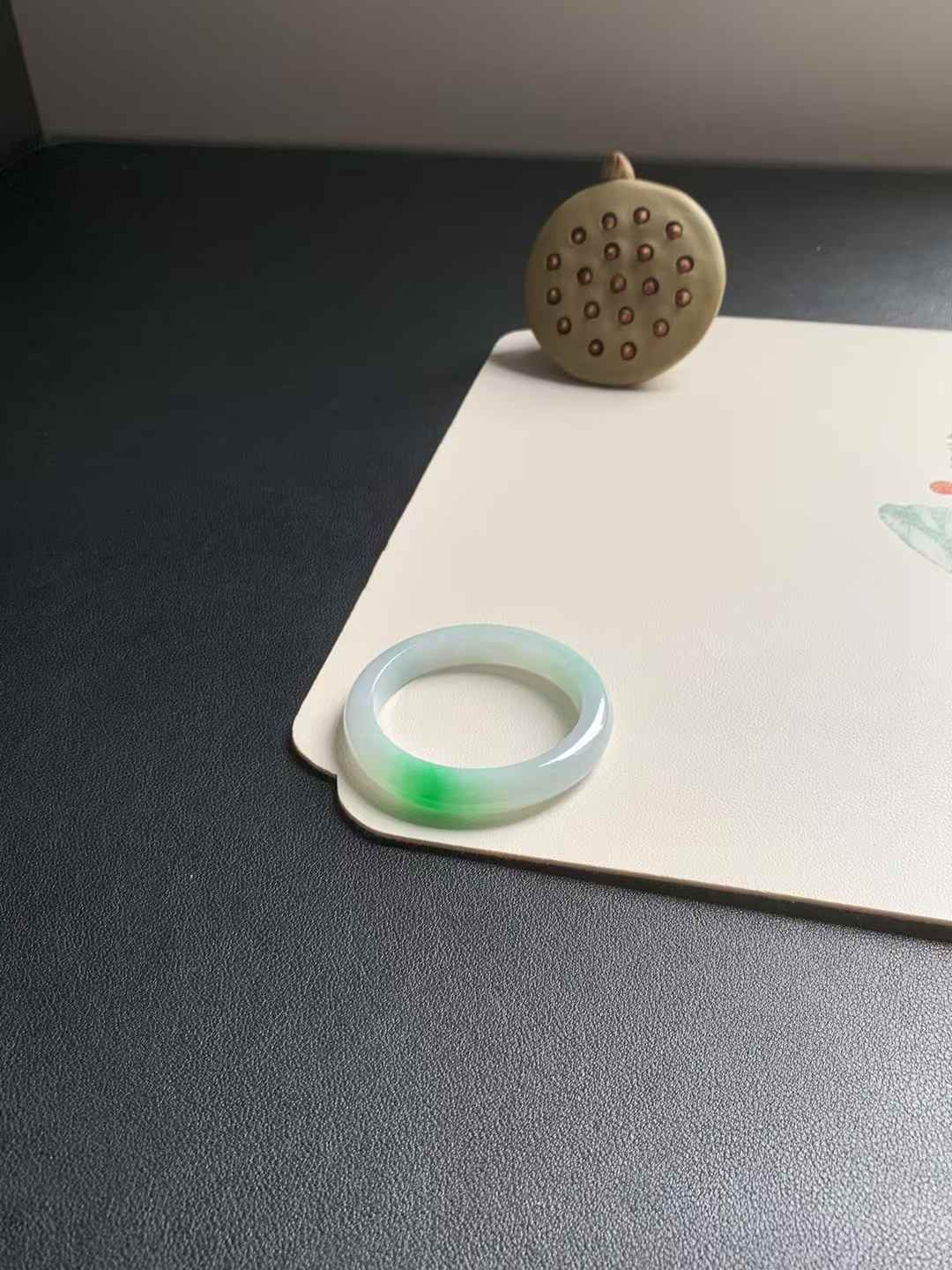 这款白底青正圈翡翠手镯,尺寸为52.3-10.8-7.8mm,质地水润柔和,底色细腻纯净。清新的阳绿色泽如春风拂面,佩戴时格外亮眼吸睛,无任何纹裂,展现出天然翡翠的纯净与优雅,是提升气质的理想选择。