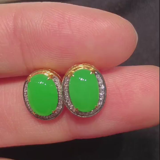 这款阳绿蛋面耳钉带来清新活力的绿色光彩,宛如春日嫩叶般俏皮可爱。蛋面设计圆润饱满,轻松点亮你的日常造型,让你自信闪耀每一刻。无论是约会还是派对,都能增添一抹独特的趣味与魅力。