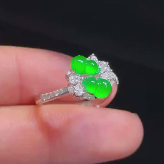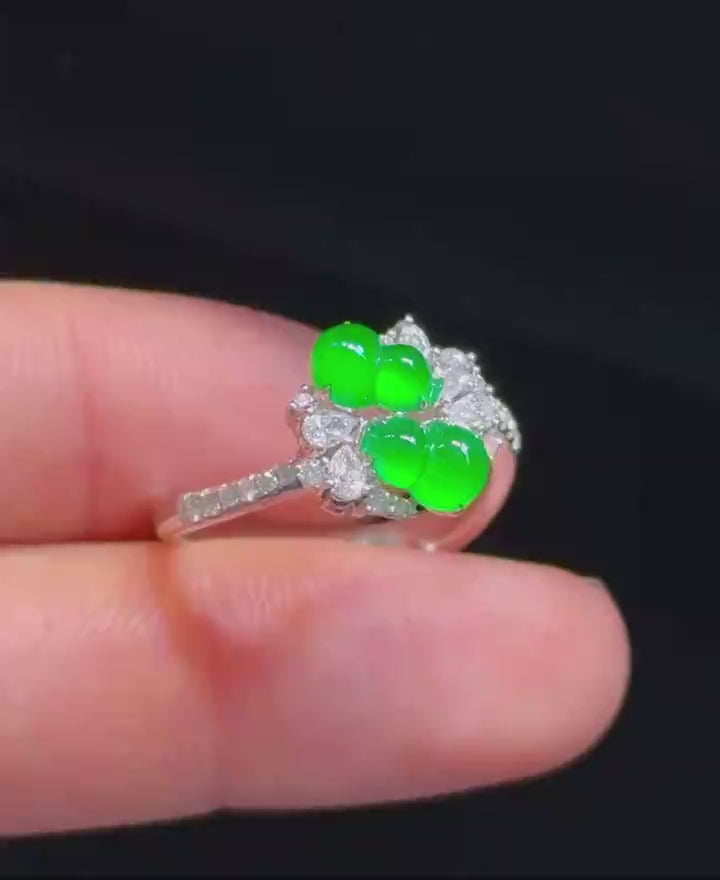 这款高冰种正阳绿缅料双拼葫芦戒指,带来清新亮眼的视觉享受。6.8x4.5x3毫米的裸石玲珑剔透,双色拼接设计让每个角度都独特迷人。戴上它,像拥有一个幸运红包,给你的日常增添一抹活泼灵动的风采。
