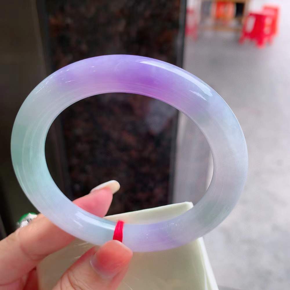 这款圆条冰春彩翡翠手镯,尺寸为60.6×10.5毫米,展现出完美无瑕的质感与色彩。