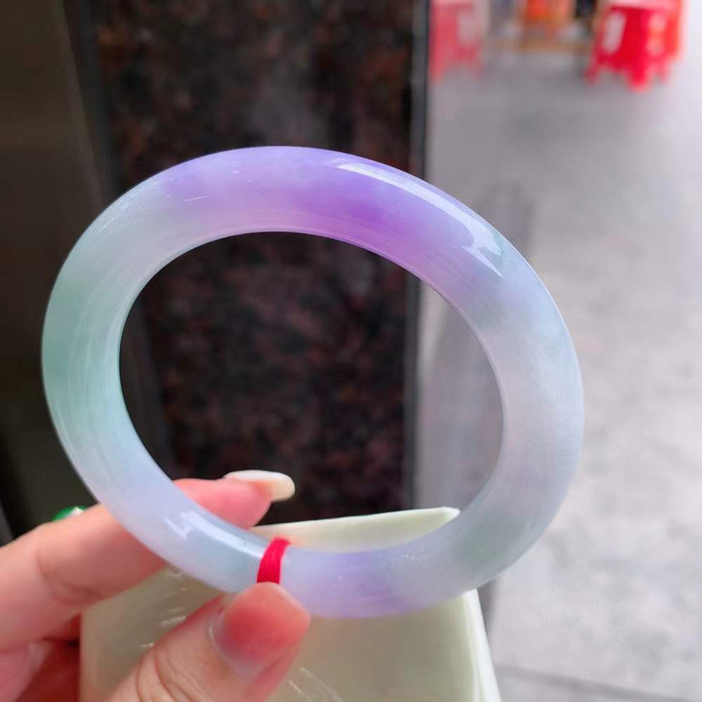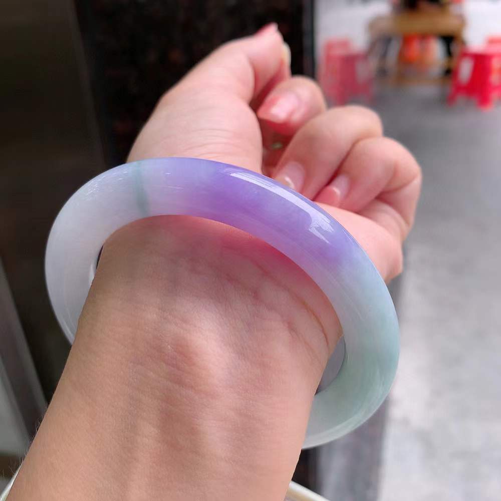 🍃圆条冰春彩翡翠手镯